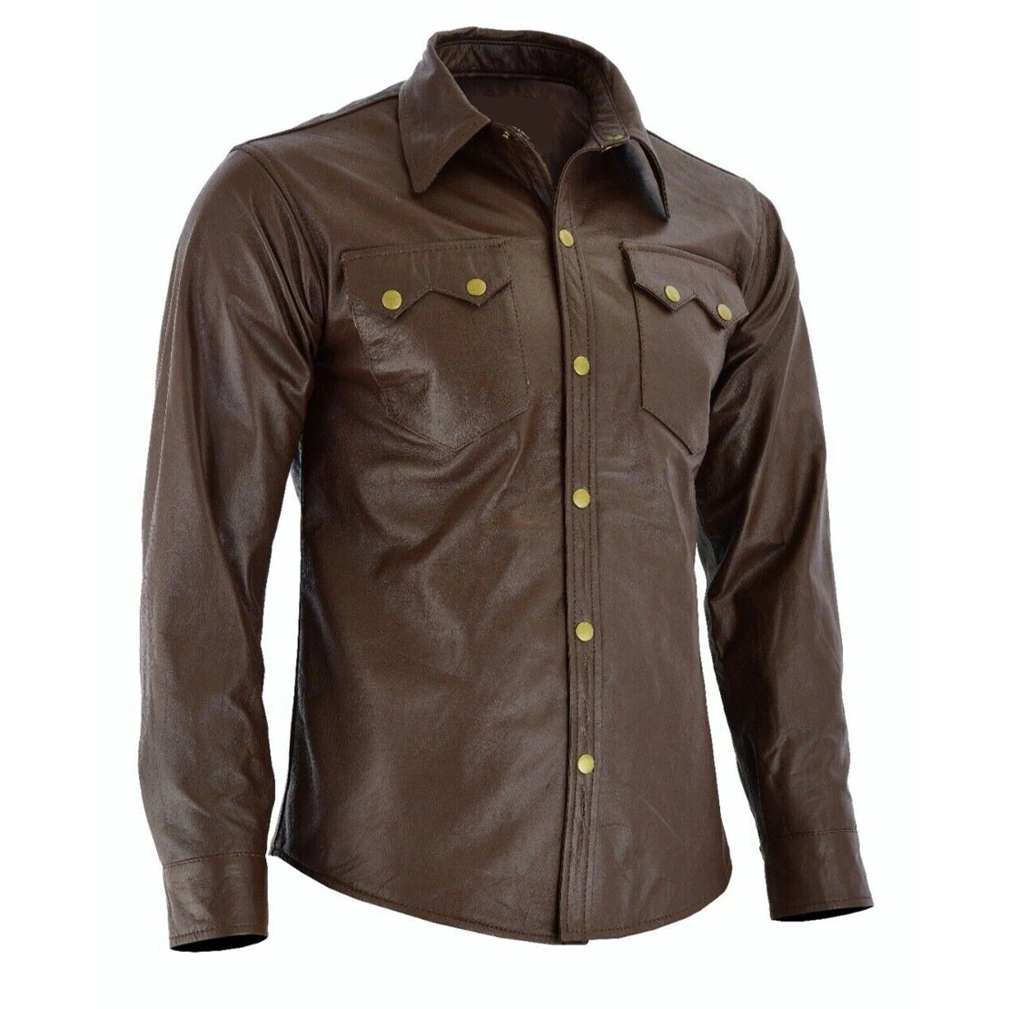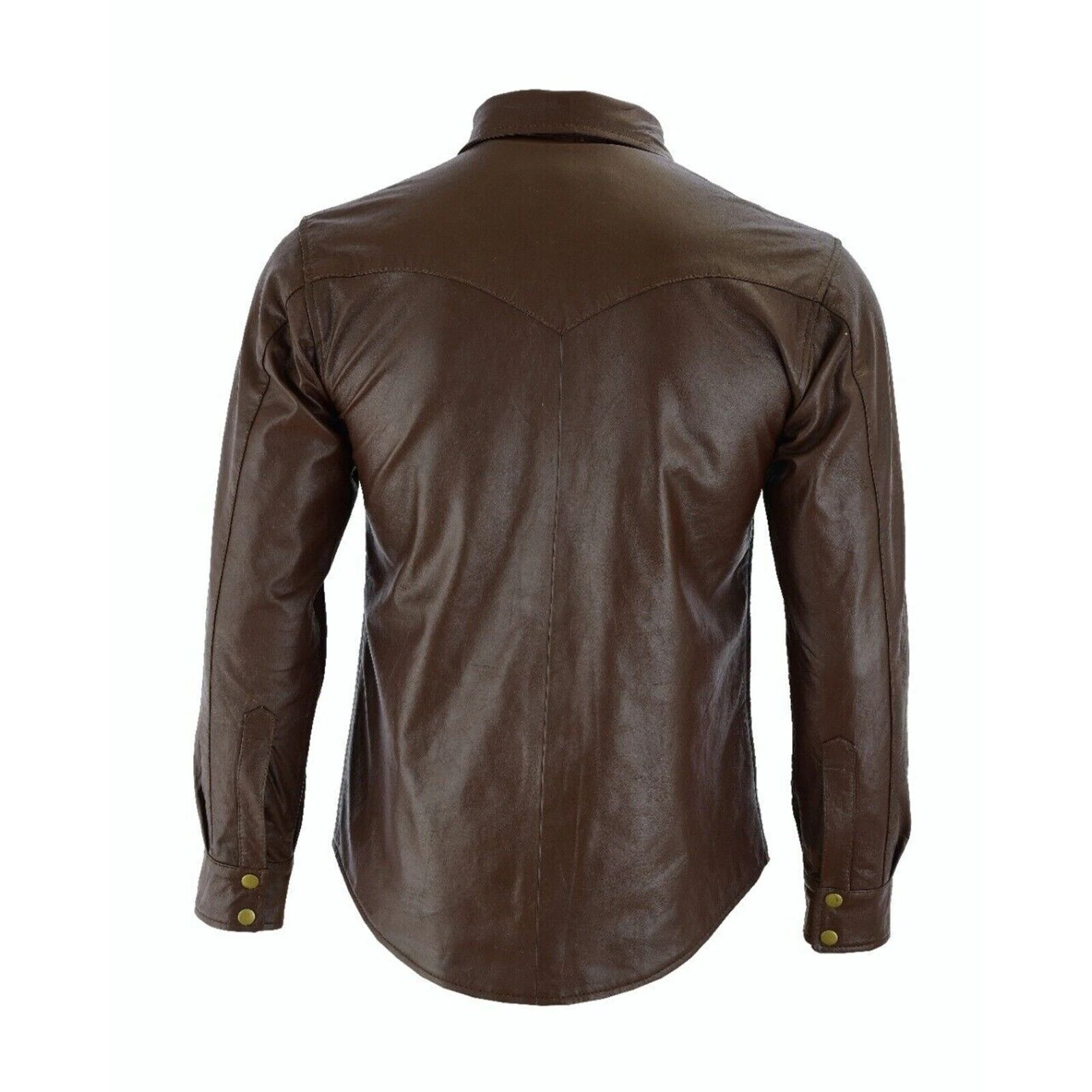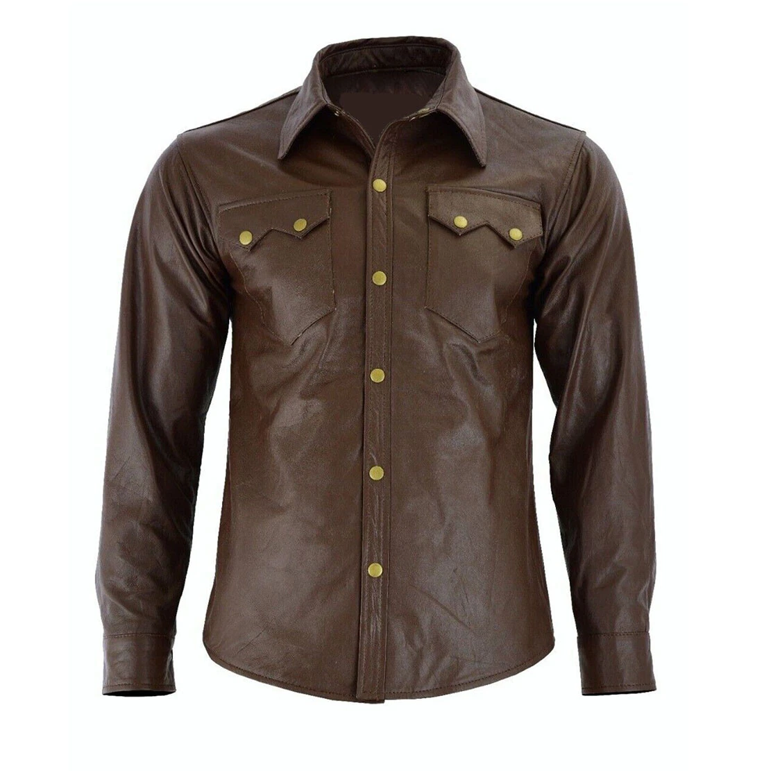 Brown Light Weight Super Soft Pure Lambskin Men’s Leather Shirts Full Sleeve