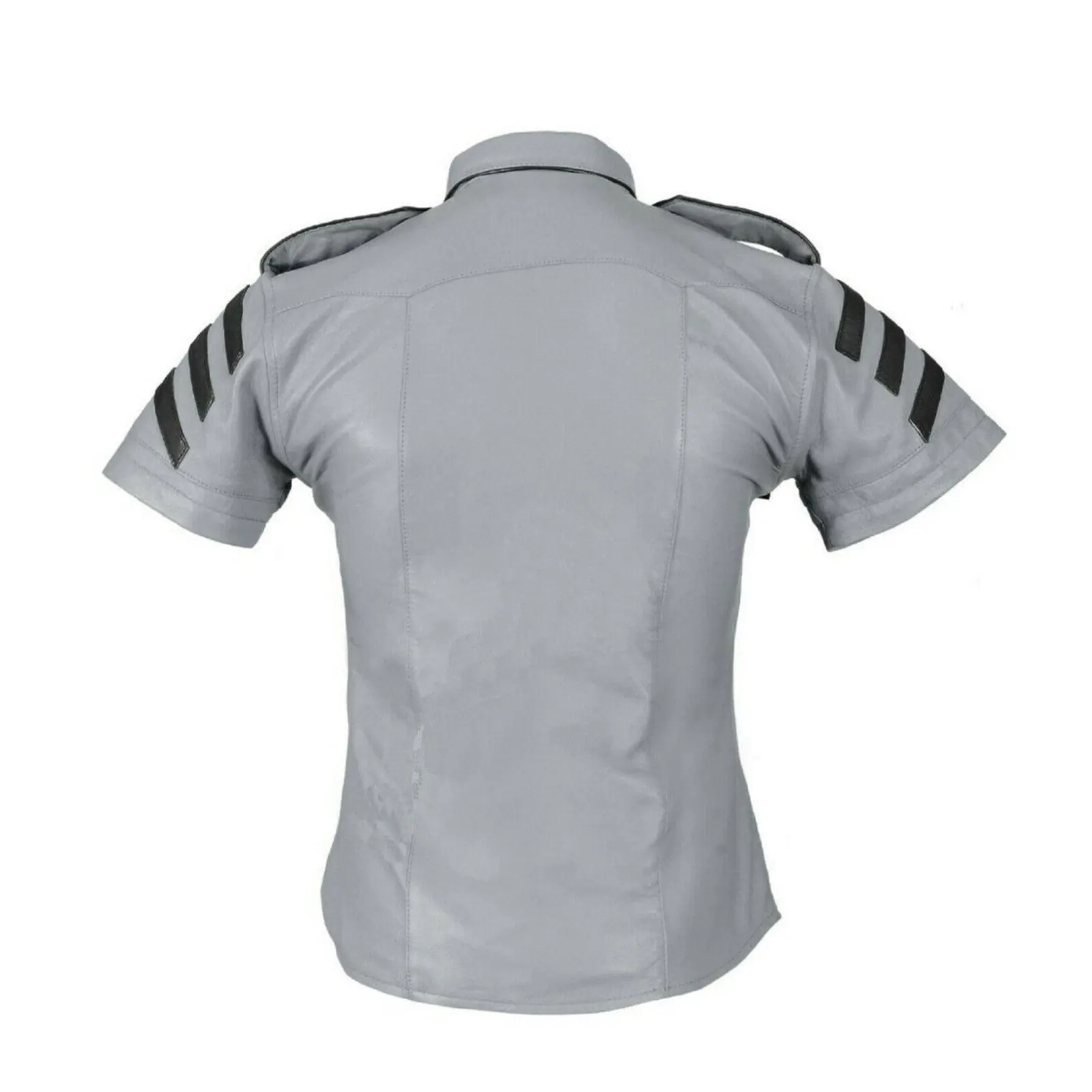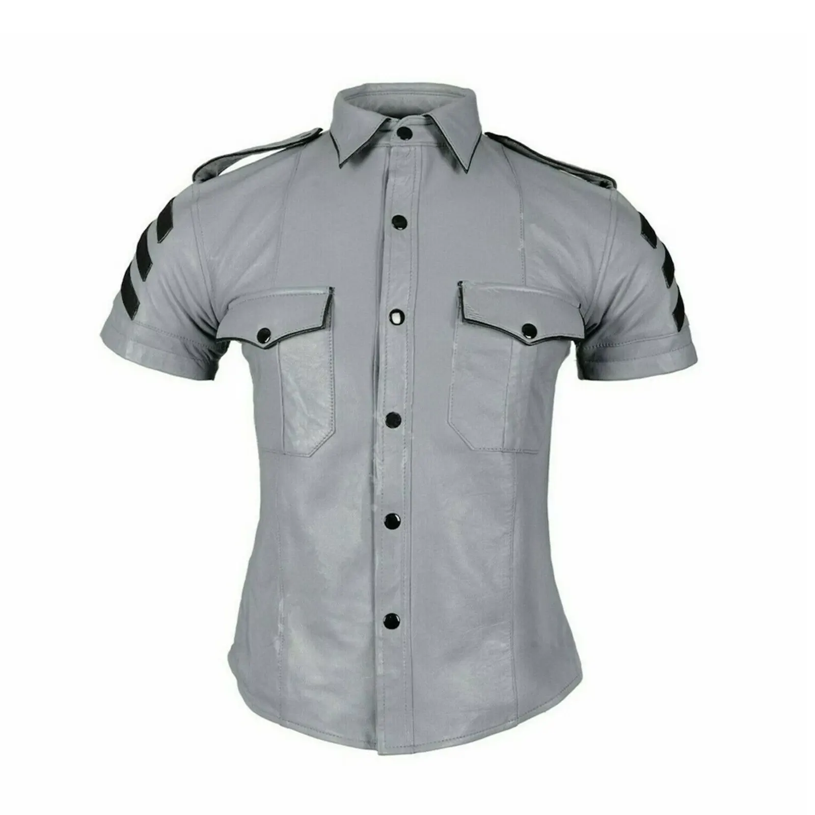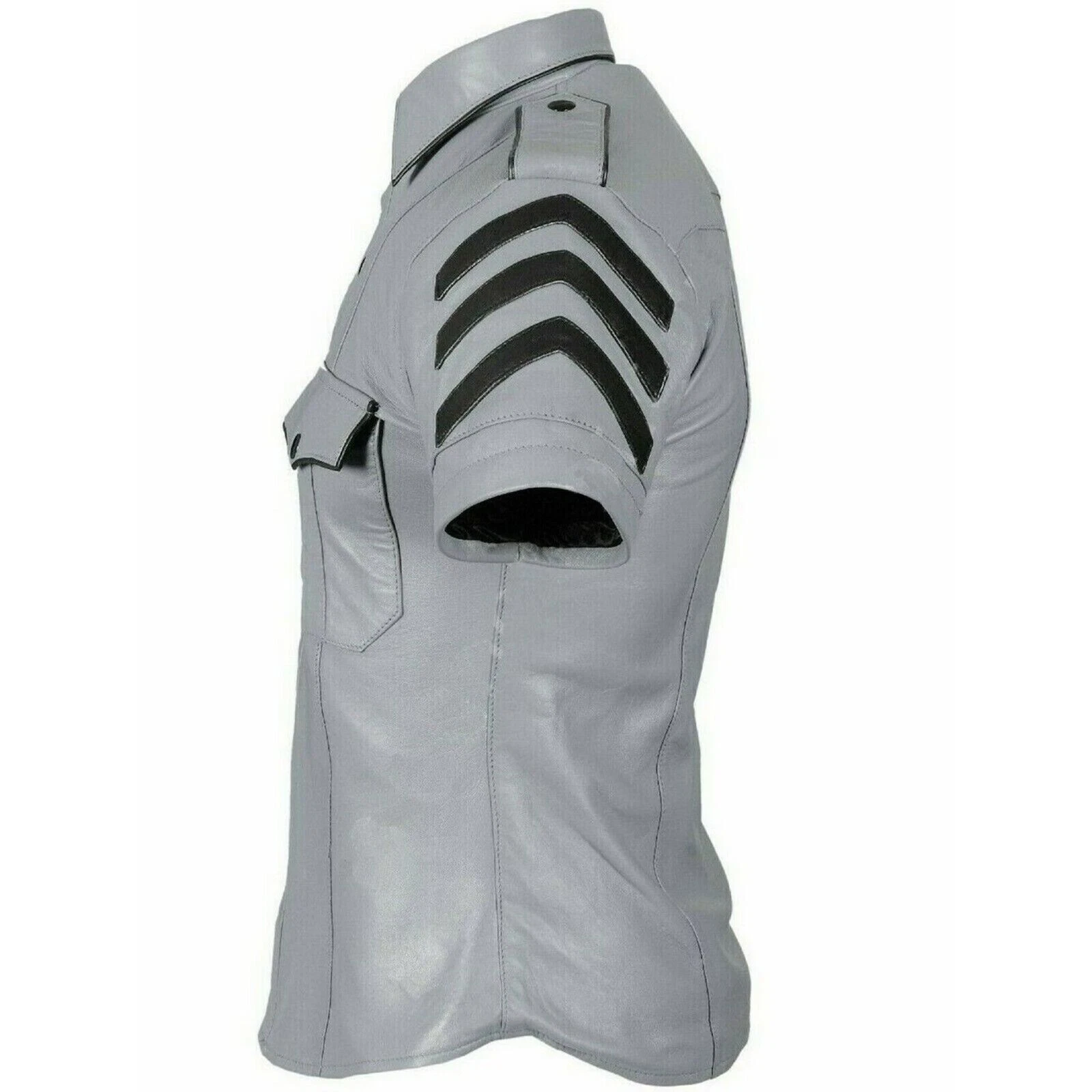Men Real Lambskin Soft Gray Leather Shirt genuine lambskin leather police style