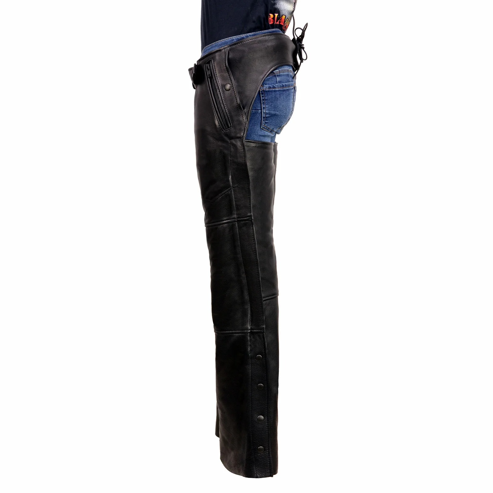 Heavy-duty side zippers make them easy to put on and take off over jeans or riding pants.