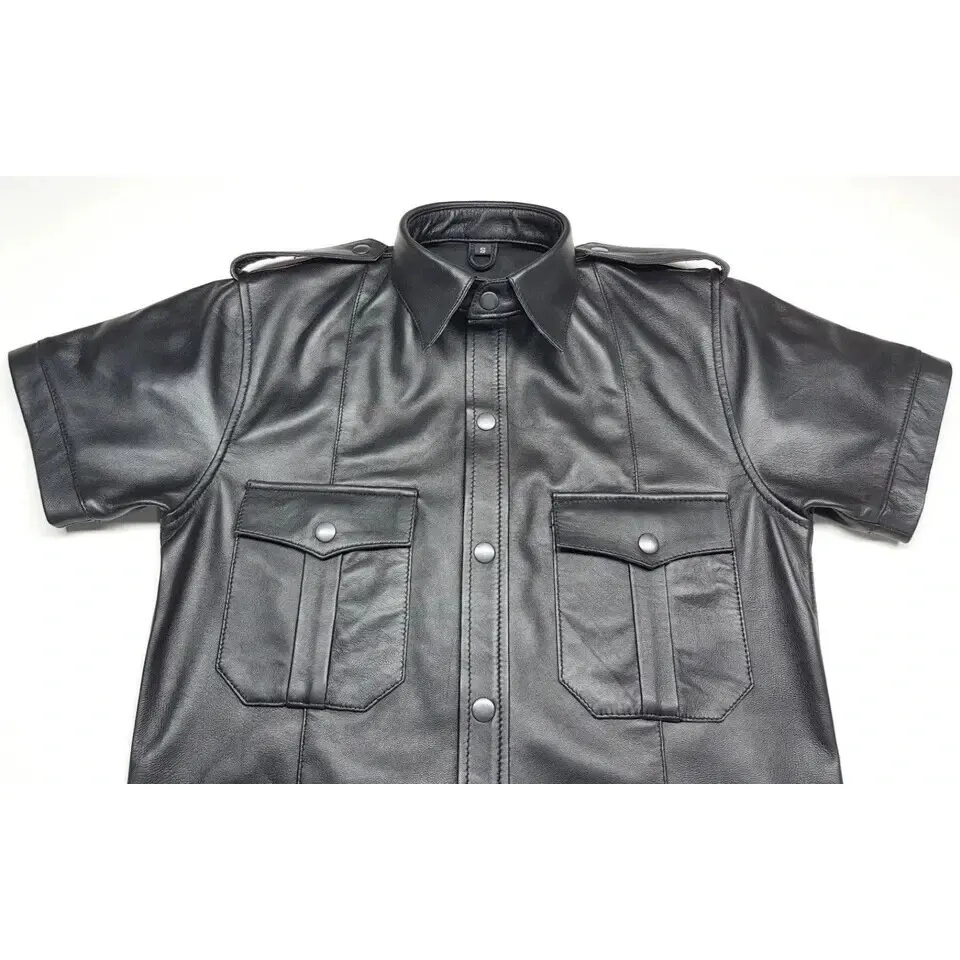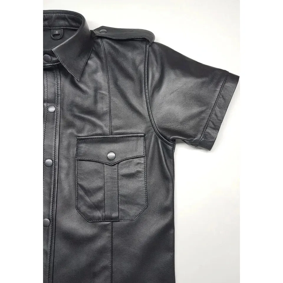 Men’s Genuine Lambskin Leather Shirt Basic Snap Jacket Biker Slim Fit