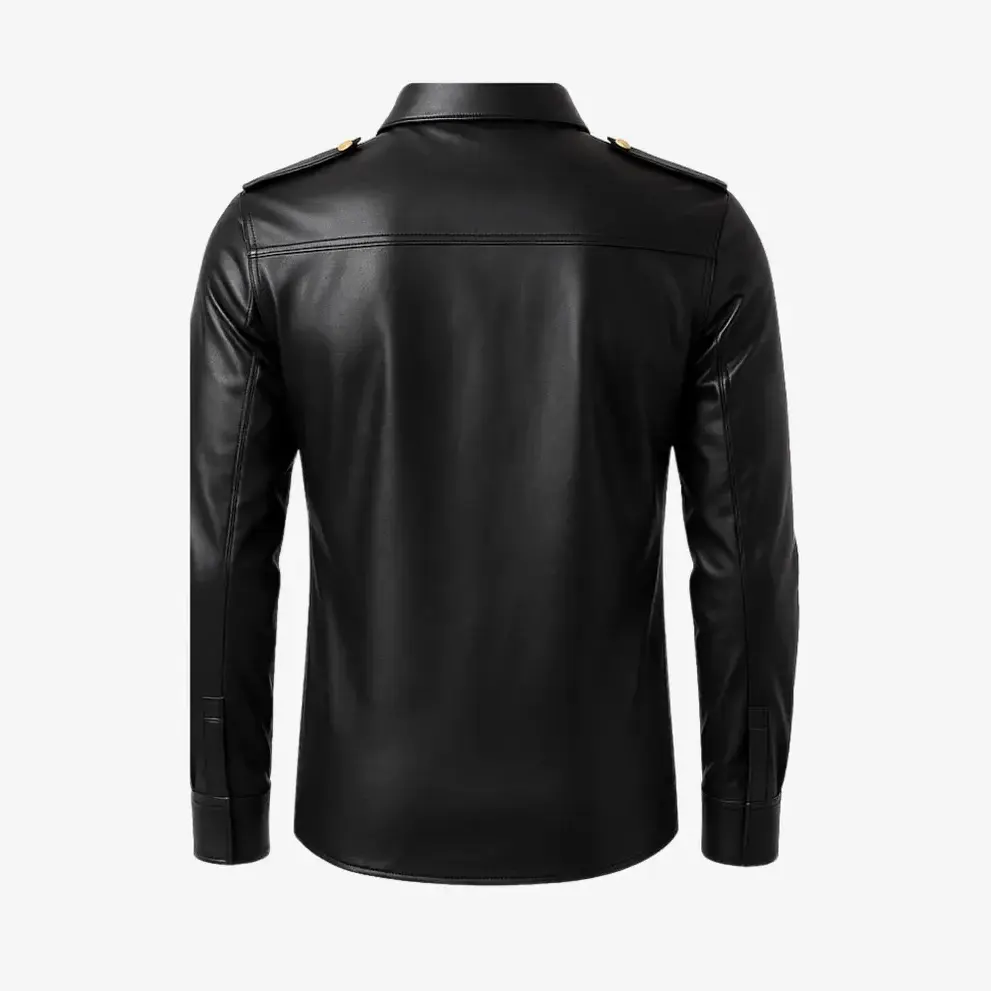 Mens Military Style Genuine Leather Outfit Slim Fit Shirt & Pants