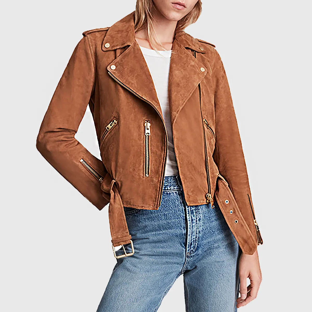 Women’s Tan Suede Cropped Biker Jacket